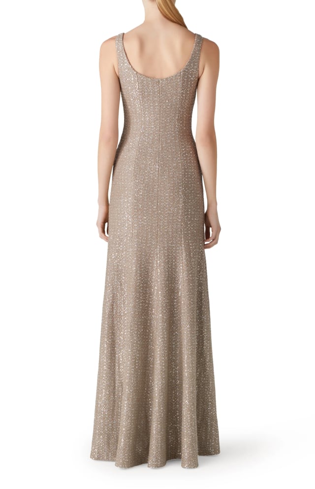Shimmering sequins illuminate the textured knit of this occasion-worthy gown in a simply elegant A-line cut.