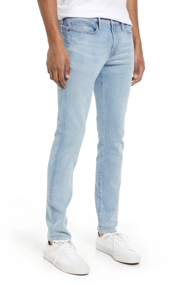 Light distressing lends a broken-in finish to mid-rise skinny jeans in a wear-with-anything wash.