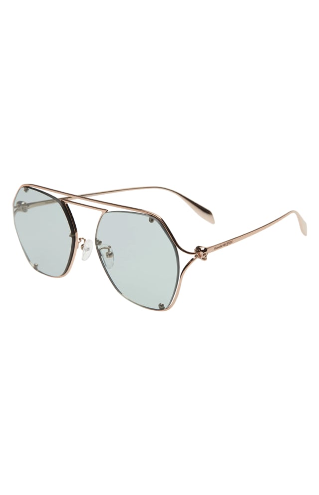 Signature skull hardware marks the temples of these hexagonal sunglasses that deliver bold rocker-chic style.